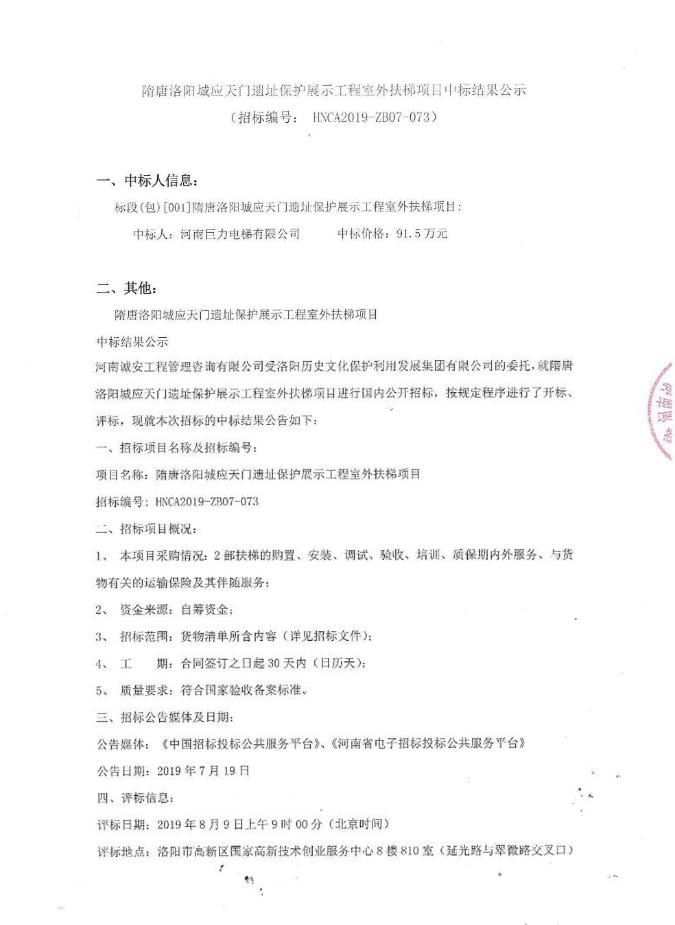上一篇:洛陽電梯公司安裝要注意什么?下一篇:中標(biāo)通知書